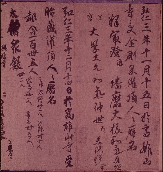 「灌頂記」は、空海から灌頂を受けた人々の名簿でしかないが、人に見せることを意識しないで書かれたためか、空海の肉声がそのまま封じ込められているような魅力的な書。
