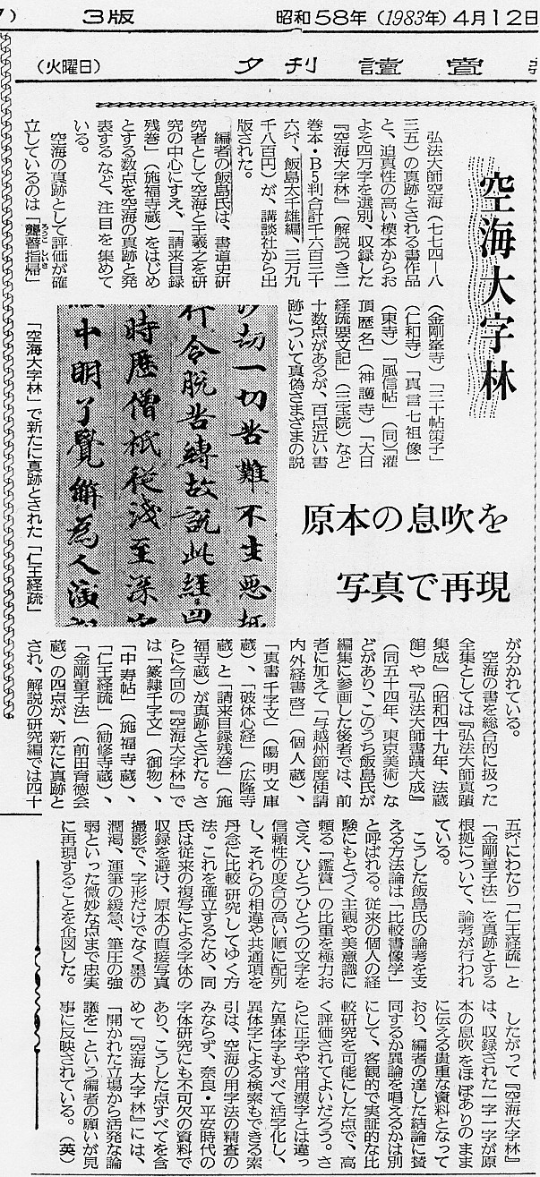 飯島が、主唱する比較書像学に基づく空海研究用のデータベースとして収集した空海の字60000字より、約40000字を公刊したもの。