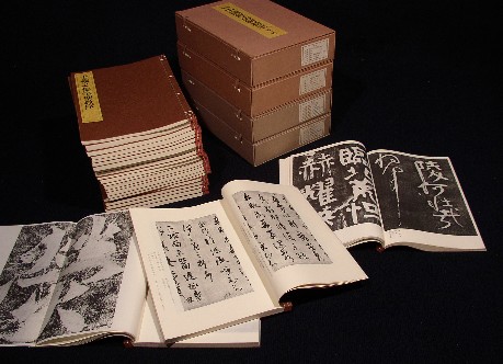 | 1984年2月〜4月、東京書籍刊(B4・線装本・4帙・25帖・198000円)。 飯島春敬編になる中国の書蹟全集。書芸文化院所蔵の上田桑鳩旧蔵の原拓本を主体に、飯島提供の新資料を交えて刊行した。 執筆者――飯島春敬・飯島太千雄・鬼頭墨峻 飯島は、「王羲之 喪乱帖等墨蹟及び刻帖」「王羲之 十七帖三種」「王羲之 集字聖教序」「智永 真草千字文関中本」「孫過庭 書譜」「顔真卿 大唐中興頌」「顔真卿 祭姪文稿等諸蹟」「李 通り一遍の解題を超え、いずれにも本格的な論考を展開している。 撮影/飯島太千雄 |
